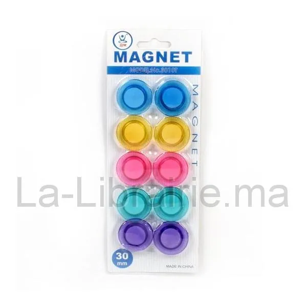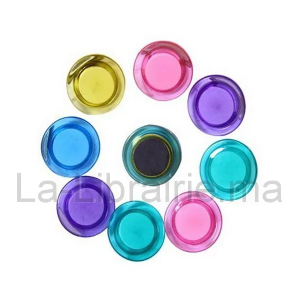 Magnets pour tableau magnétique boites de 10 unités 3 mm multi couleurs pratique pour faire un affichage et fixe des feuilles sur un tableau magnétique.