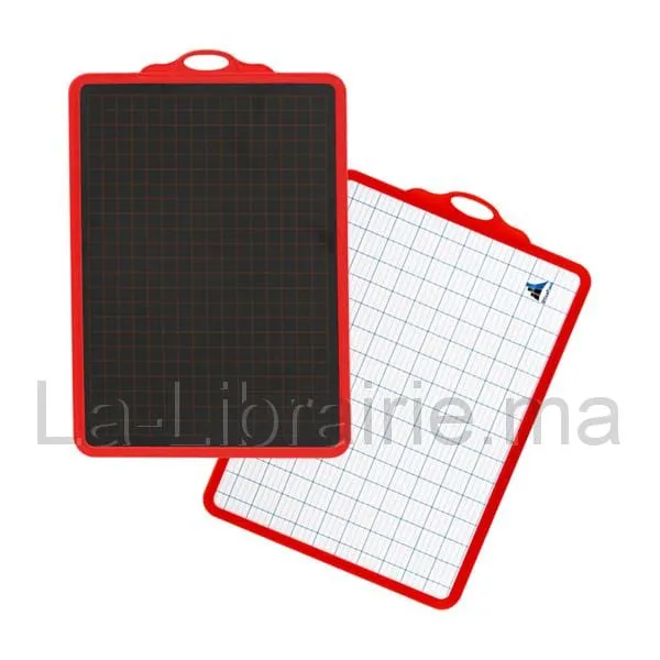 Ardoise plastique 2 en 1, double face blanche et noir avec quadrillage idéale pour l’apprentissage de l’écriture à la craie & marqueur effaçable.