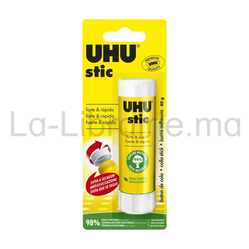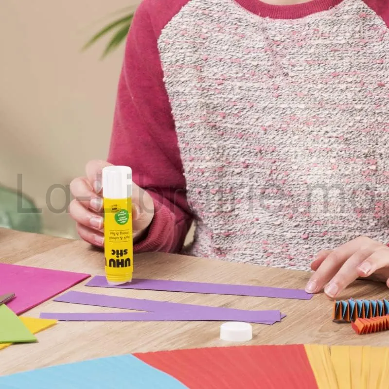 Le bâton de colle UHU Stic 40 g assure un collage propre et efficace au quotidien. Sa formule sans solvant, composée à 98 % d’ingrédients d’origine naturelle, respecte le papier et les photos. Il applique la colle de manière homogène, sans grumeaux ni traces.