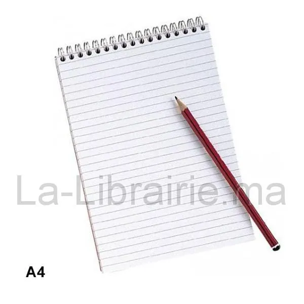 Bloc sténo avec spirale, 70 feuilles, 70 grammes, format 21 x 29.7 cm, Feuilles lignées.