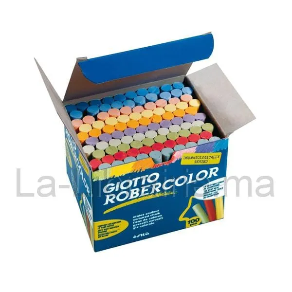 Boite 100 craies couleurs, testée dermatologiquement, cette craie ronde Giotto Robercolor est conçue pour tableaux noir et ardoise.