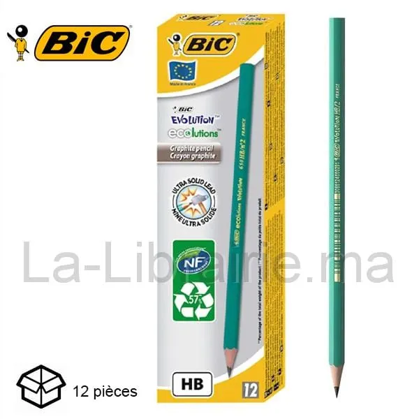 Boite 12 crayons bic evolution, parfait pour un usage quotidien, sa mine hb permet d’écrire, de dessiner et se gomme facilement.