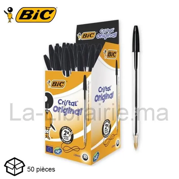 Stylo bic cristal, pointe moyenne de 1,0 mm glisse sur le papier avec un confort inégalé, couleur: noir ( 50 pièces ).