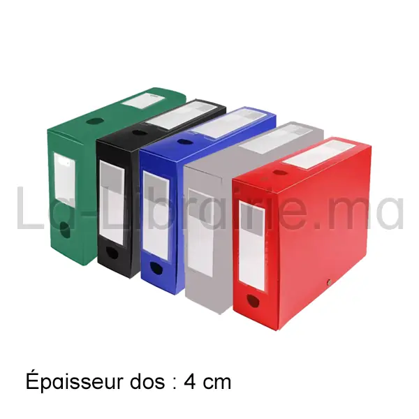Boîte d’archives en plastique 4 cm, format 24 x 32 cm avec bouton de fermeture