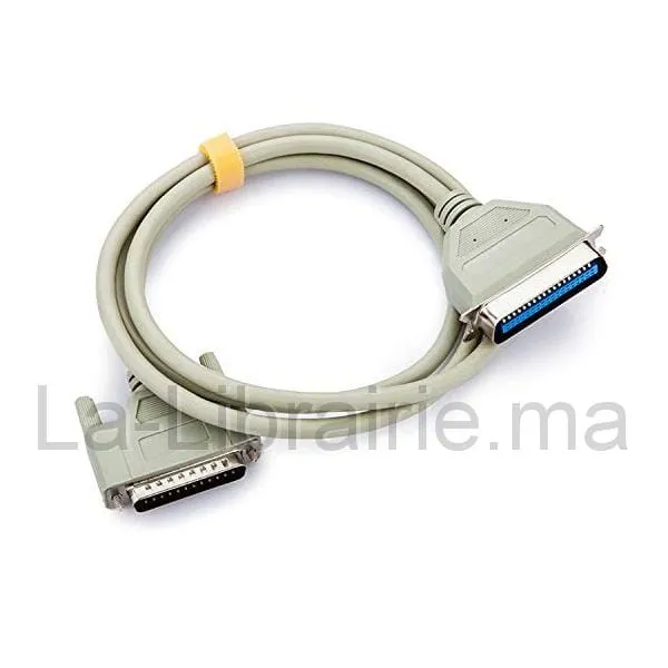 Ce cordon permet de raccorder une imprimante dotée d’un port centronics 36 à un PC doté d’un port parallèle DB25.