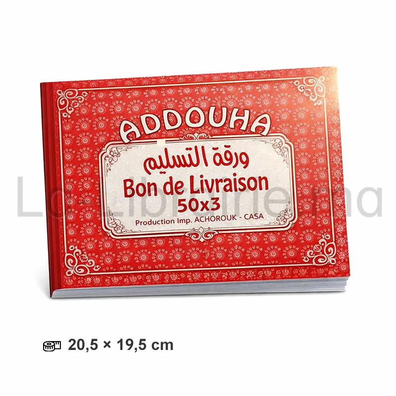 Carnet bon de livraison NCR 3 exemplaires format 20,5 × 19,5 cm autocopiant triplicata utilisé pour le suivi des livraisons avec papier autocopiant NCR (No Carbon Required) permettant la génération automatique de trois copies.