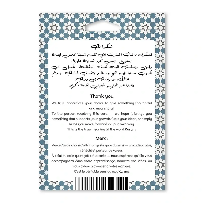 En offrant une carte cadeau KARAM conçue pour une utilisation en ligne au Maroc, vous êtes assuré de réjouir son destinataire.