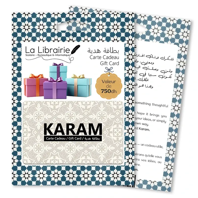 Utilisez la carte cadeau « KARAM en ligne » de 750 DH sur toute la boutique La-Librairie.ma.