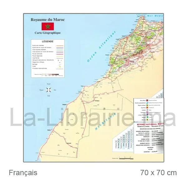 Carte du Maroc – Français 70 x 70 cm