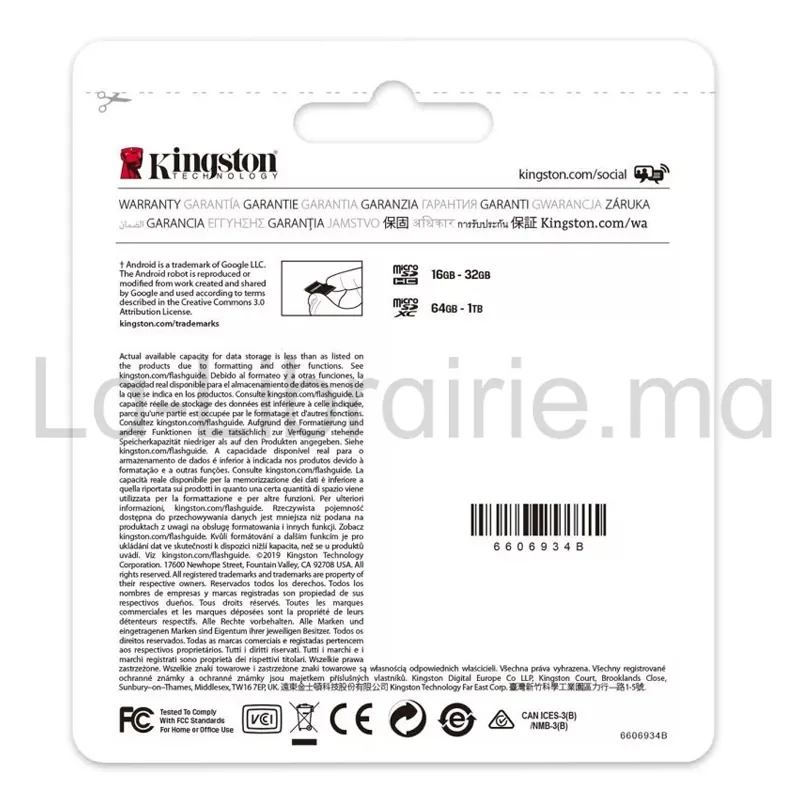 Carte mémoire 64 Go Kingston UHS-I classe 10 et indice A1