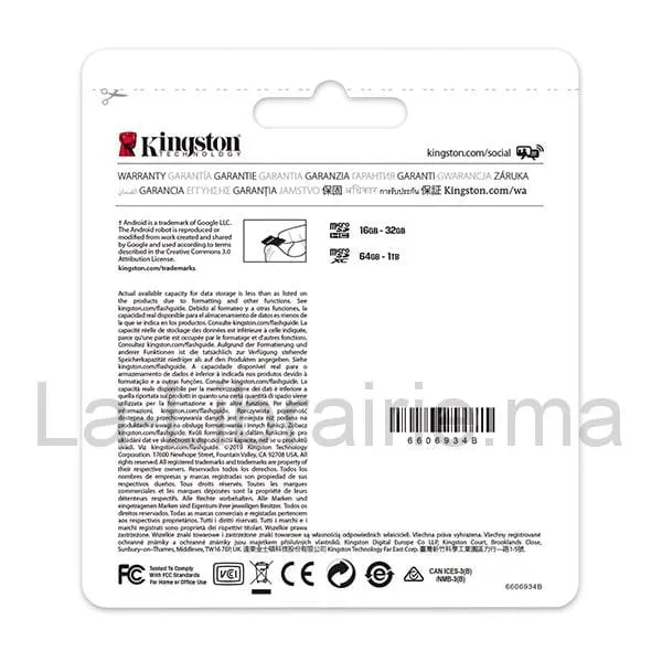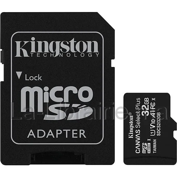Carte micro SD Kingston Canvas Select Plus 32 Go La classe 10 UHS-I accélère jusqu’à 100 Mo/s Optimisé pour les appareils Android Capacités de stockage jusqu’à 512 Go Durable
