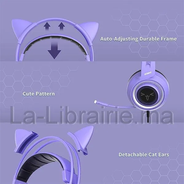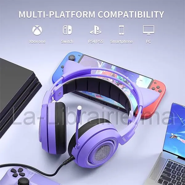 Le design mauve, rehaussé d’oreilles de chat amovibles, apporte une touche originale. Ce style plaît particulièrement aux jeunes joueuses. Le bandeau auto-réglable assure un bon maintien, même lors de longues sessions de jeu.