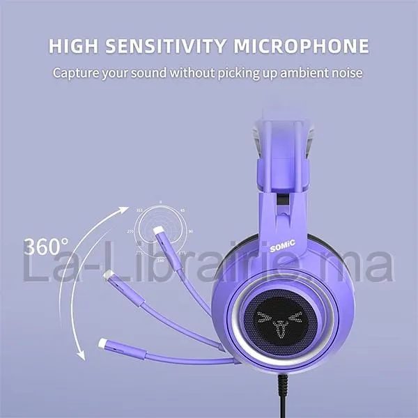 Le casque de jeu stéréo SOMIC G951S violet offre un son immersif grâce à ses haut-parleurs de 40 mm. Ils produisent un champ sonore clair, riche et dynamique. Chaque détail audio est précis, ce qui améliore l’expérience dans les jeux, les vidéos ou les appels.
