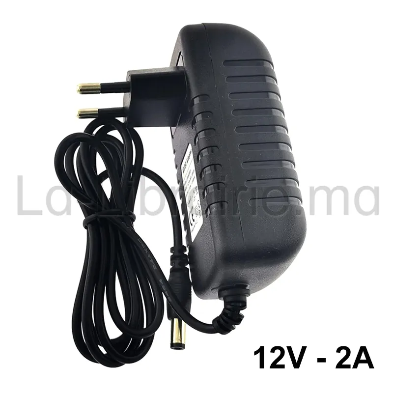 Ce chargeur d’alimentation secteur délivre une tension stable de 12V avec un courant de sortie de 2A. Il convient parfaitement aux équipements basse tension comme les bandes LED, les caméras de surveillance, les routeurs ou les petits appareils électroniques.