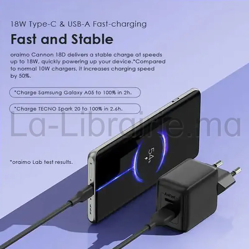 Le chargeur Oraimo PowerCube 10 Sleek OCW-1111EC délivre 10W pour recharger efficacement tous vos appareils USB-C. Il inclut un câble USB-A vers USB-C de 1 mètre. Vous pouvez l’utiliser au quotidien, à la maison comme au bureau.