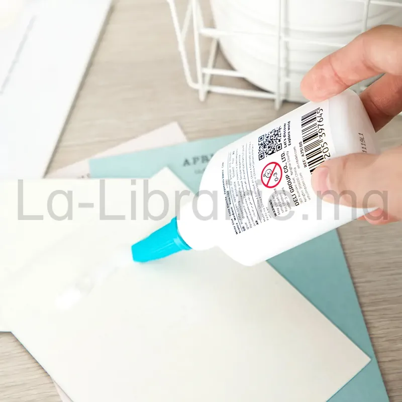 Cette colle Deli, référence A75100, reste fluide et facile à étaler. Elle sèche rapidement pour un résultat net. Elle ne dégage pas d’odeur forte, ce qui la rend adaptée aux enfants sous surveillance.