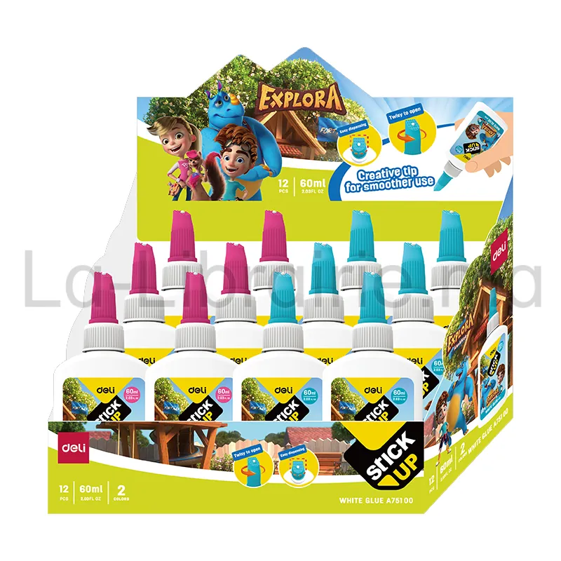 La colle blanche liquide Deli de 60 ml convient parfaitement aux activités scolaires et manuelles. Sa formule à base de PVA assure une adhérence propre et efficace sur le papier, le carton ou le bois léger. Grâce à son embout de précision, vous appliquez la colle facilement et sans gaspillage.