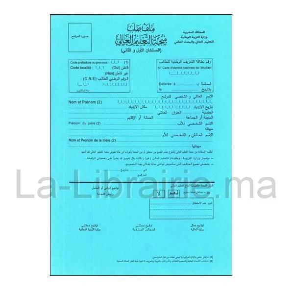 Formulaire de demande de la bourse scolaire.