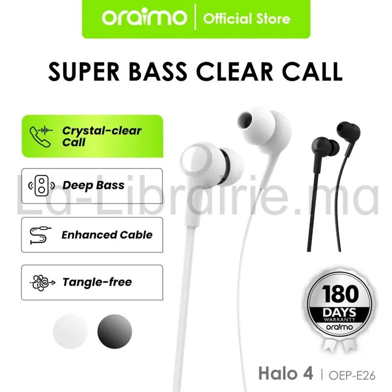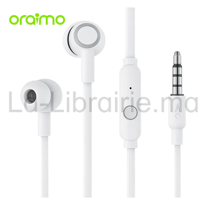 Les écouteurs filaires intra-auriculaires Oraimo Halo 4 Réf. OEP-E26 en blanc combinent performance sonore et compatibilité universelle. Grâce à leur connecteur jack 3,5 mm, ils se branchent facilement sur tous les appareils équipés d’une sortie audio standard, comme les smartphones, tablettes ou ordinateurs portables.