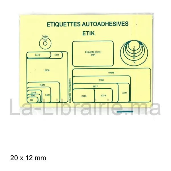 Paquet d’étiquettes de prix adhésives, paquet de 500 unités, format 20 x 12 mm.