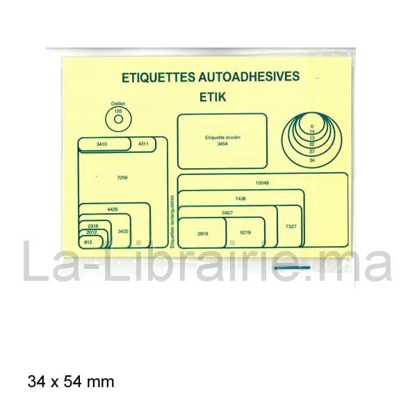 Paquet d’étiquettes de prix adhésives, paquet de 60 unités, format 34 x 54 mm.