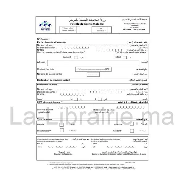Feuille de soins maladie CNSS.