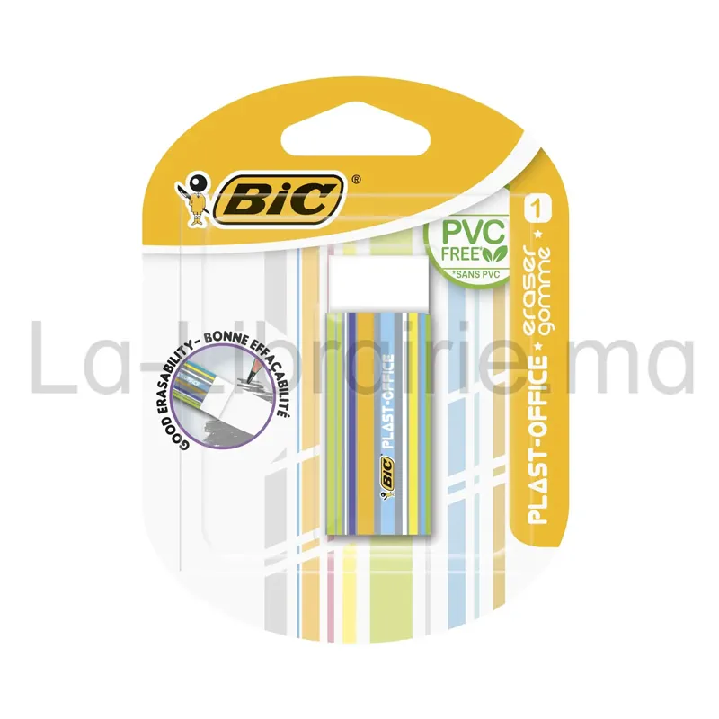 Son format rectangulaire compact facilite la prise en main. Il permet d’effacer aussi bien de petites zones précises que des surfaces plus larges. La gomme BIC Plast Office s’intègre donc parfaitement dans une trousse scolaire, un bureau ou un espace de travail.