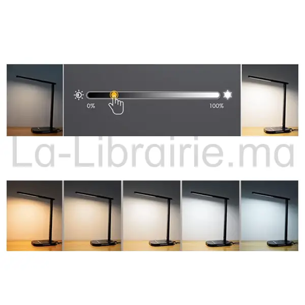 La lampe de bureau LED 12W offre un éclairage précis et modulable pour chaque moment de la journée. Elle intègre 5 températures de couleur et 7 niveaux de luminosité. Grâce à ses réglages fins, elle s’adapte facilement à la lecture, au travail ou à un usage détendu.