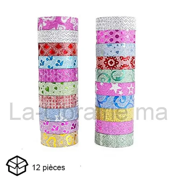 Lot de 12 rouleaux scotch couleurs avec motifs