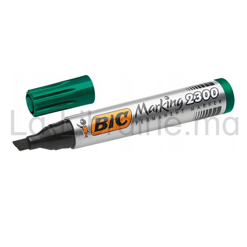 Le marqueur permanent BIC vert, BIC Marking 2300 vert garantit un marquage clair et durable sur de multiples surfaces. Sa pointe biseautée offre une grande précision, que ce soit pour des traits fins ou larges. Il s’utilise facilement sur le carton, le métal, le plastique, le verre ou le bois.