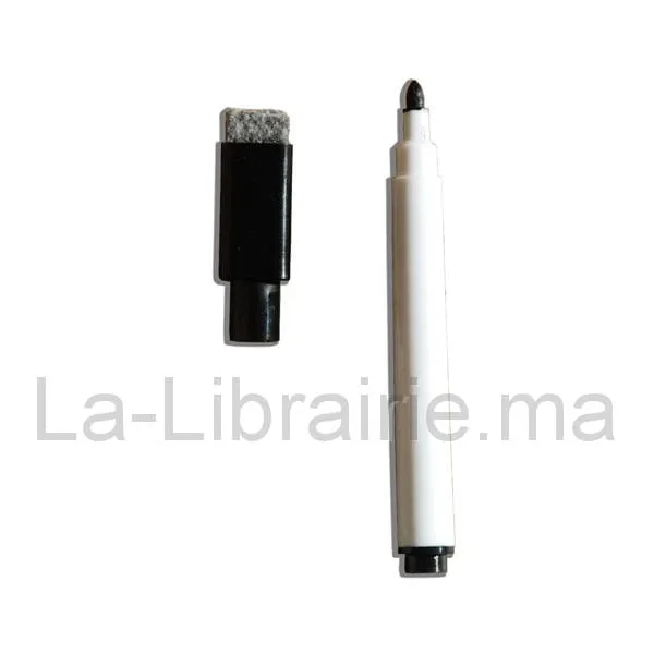 Feutre effaçable marqueur noir pour ardoise ou tableau blanc avec bouchon effaceur intégré.