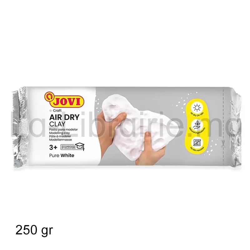 La Jovi Air Dry Clay blanche est idéale pour les travaux précis et les activités créatives en classe ou à la maison. Elle ne tache pas, ne colle pas et respecte les normes de sécurité pour les enfants dès 3 ans.