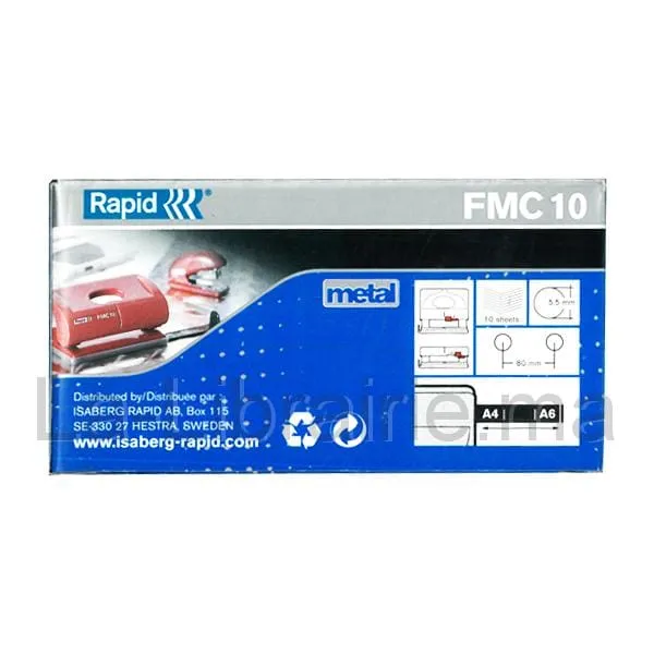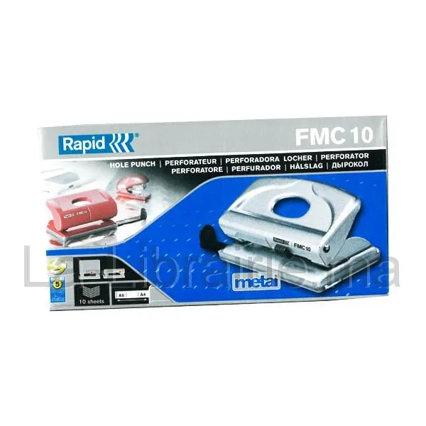 Perforeuse métallique Rapid FMC10, capacité 10 feuilles, adapté aux formats A4 et A5, structure robuste