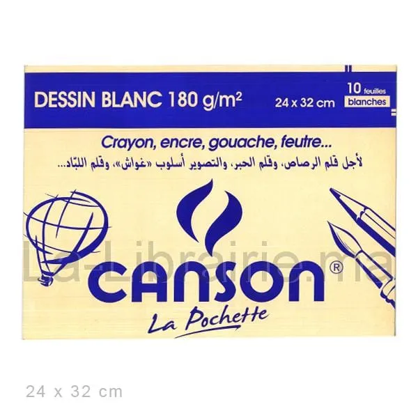 Pochette 10 feuilles papier dessin blanc 24 x 32 cm – CANSON