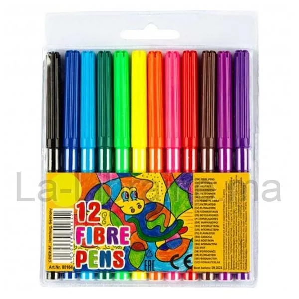Pochette 12 feutres résistants accompagnent les devoirs et les désirs créatifs des enfants, permettant de dessiner en détail ou de remplir de grandes surfaces.