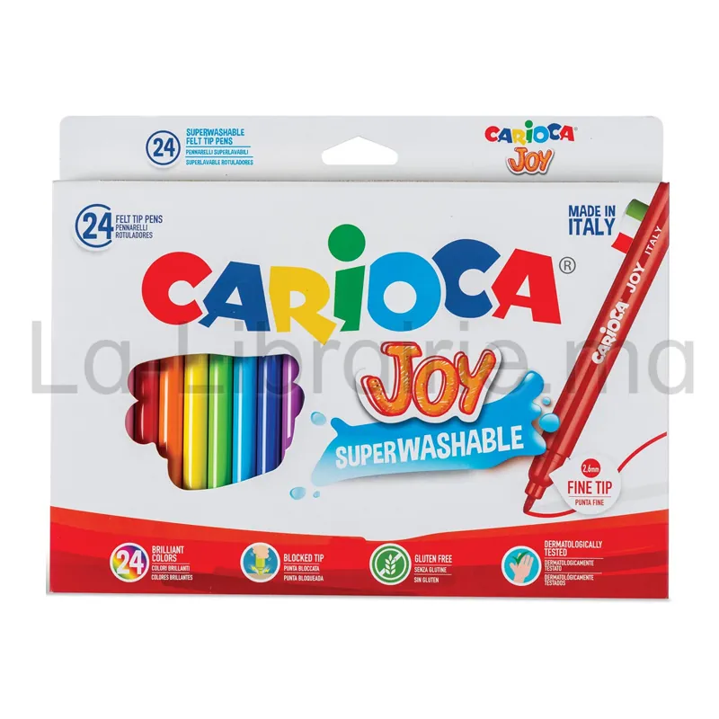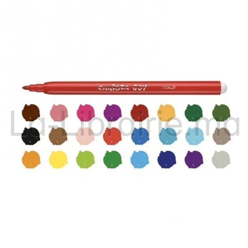 La pochette Carioca Joy offre 24 feutres de coloriage super lavables, parfaits pour les enfants dès 3 ans. Chaque feutre possède une pointe fine bloquée de 2,6 mm qui résiste à la pression. Ainsi, l’enfant trace avec précision tout en gardant une application fluide et régulière.