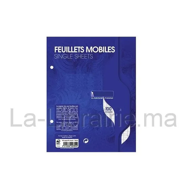 Feuilles simple blanche, grand carreaux 60 grammes, 100 pages, 17 x 22 cm, seyes blanc.