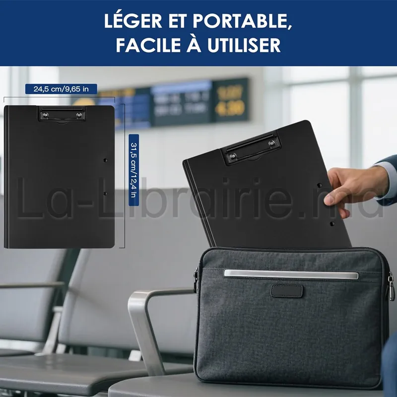 Sa structure en plastique rigide protège les documents contre les plis et les froissements. De plus, le format double permet de séparer dossiers, formulaires ou feuilles de prise de notes. Vous organisez ainsi vos documents de manière claire et efficace.