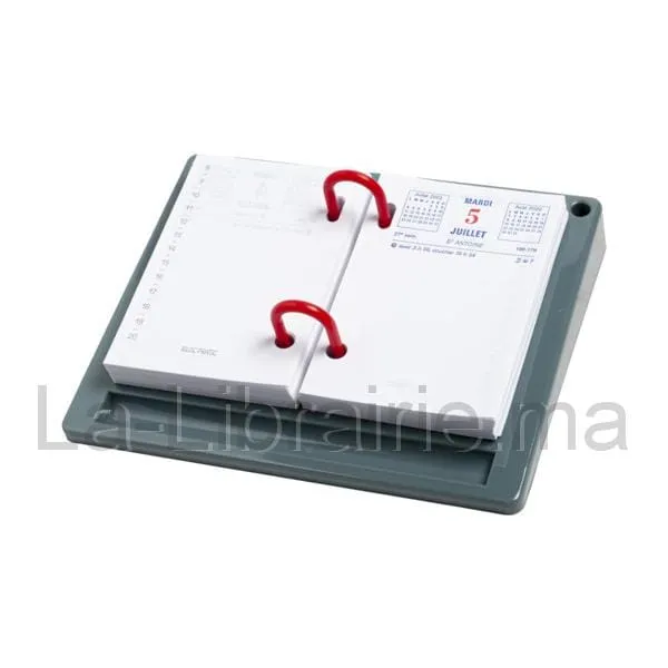Idéal pour l’organisation du bureau. Le socle pour bloc éphéméride est un socle en plastique résistant avec deux anneaux central de couleur rouge.