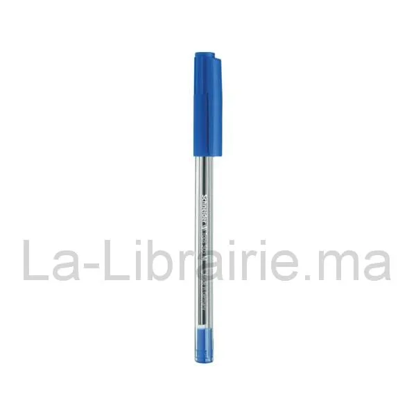 Stylo à bille et capuchon avec clip réversible. Épaisseur de trait moyenne (M) environ 0.5 mm. Corps transparent pour un niveau d´encre visible, couleur: bleu.