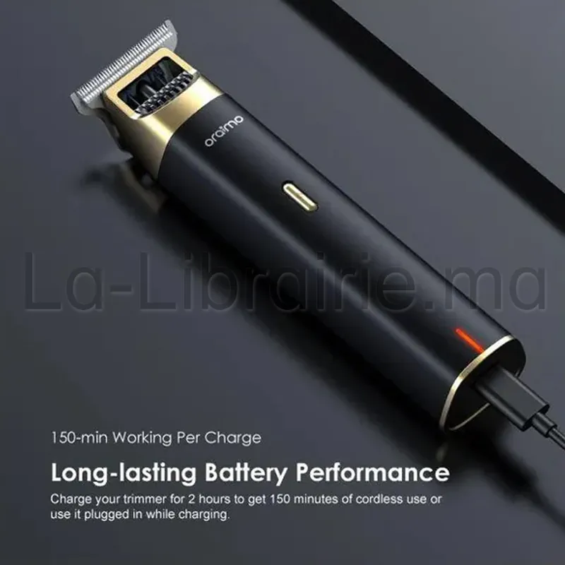 La tondeuse sans fil Oraimo SmartTrimmer2 OPC-TR12 fonctionne avec une batterie longue durée. Elle assure jusqu’à 150 minutes d’autonomie. Vous la rechargez complètement en seulement 2 heures via un port USB.